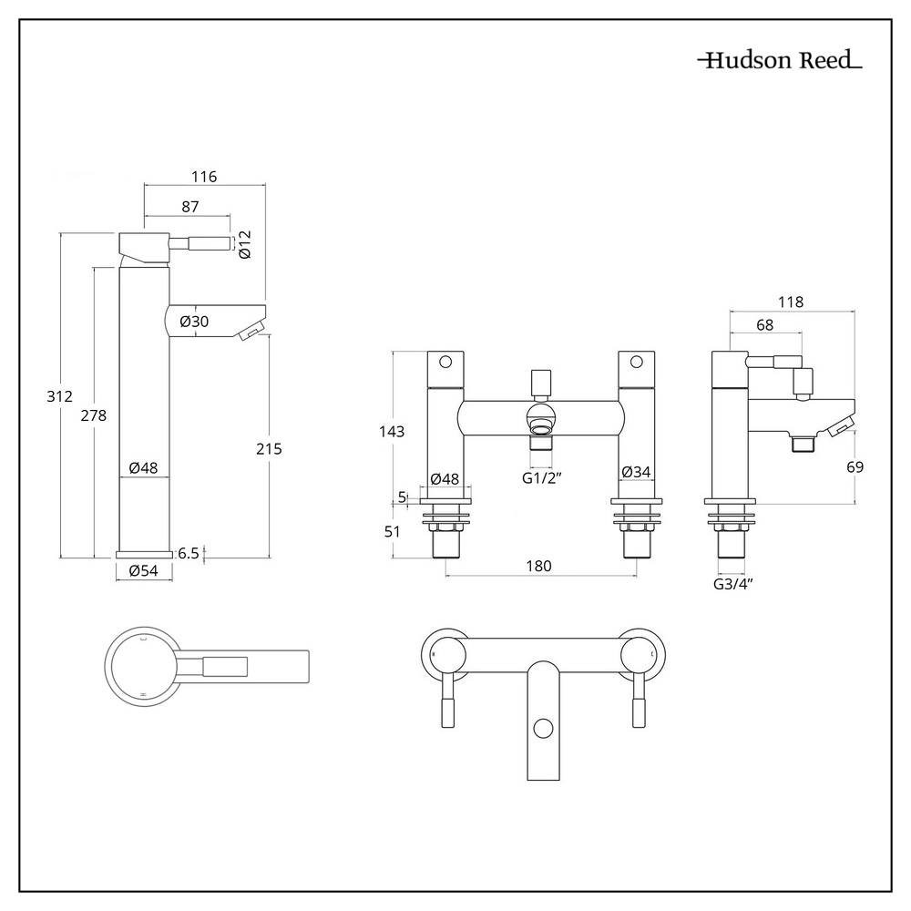 Cree un look moderno y coordinado con este set de grifos de baño que viene completo con un grifo mezclador alto para lavabo y un grifo mezclador de bañera.
